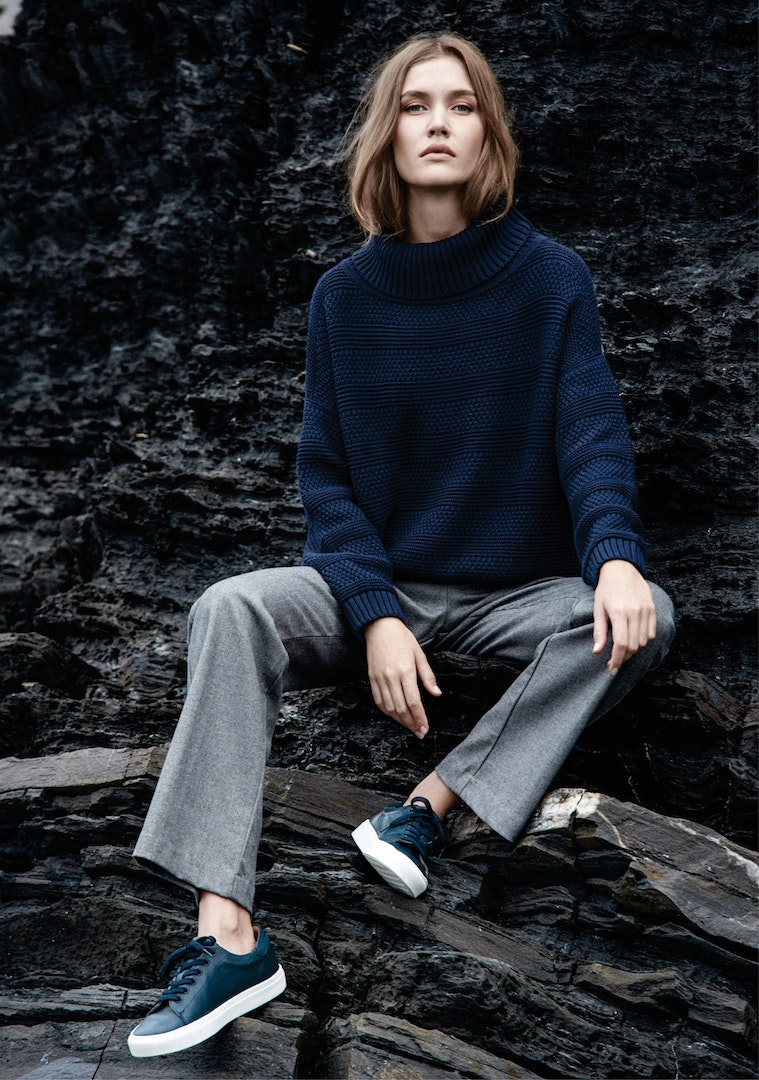 Cores sólidas como o azul marinho e o vermelho, o cinza e o cru, os rosas e os castanhos, fazem parte da oferta cromática da marca para esta temporada. As malhas são um elemento essencial e surgem em diferentes variações, assim como os tricôs em algodão, que compõem peças quentes e confortáveis.